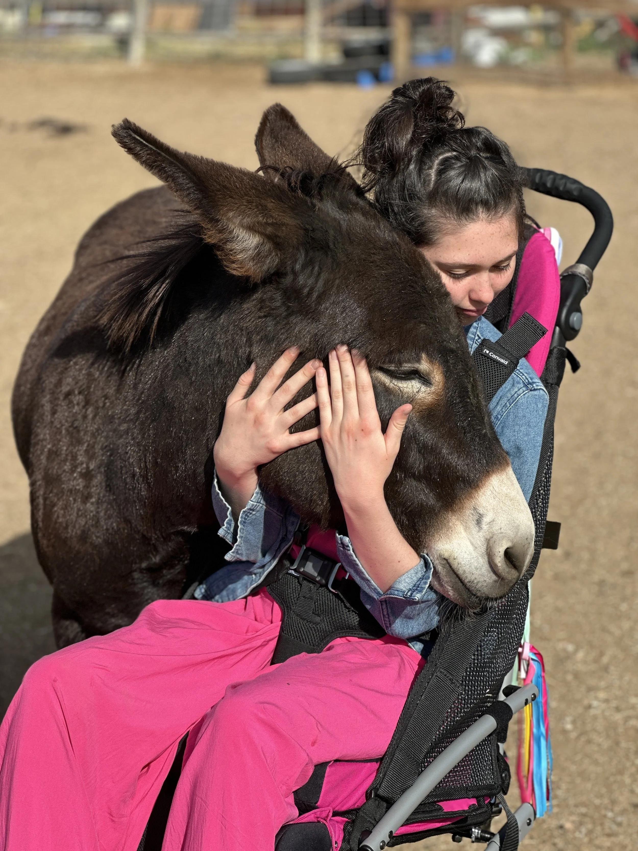 Stell is the best donkey you will ever meet. she is funny, smart, kind, sassy, and full of love!! Stella is my best donkey friend ever my BDF. She loves to snuggle me and give me hugs. Sometimes she gives me little love bites. Some days she just wants to be alone but when we drive up she getts so excited and starts makeing a lot of noise. I love Stella so much!!