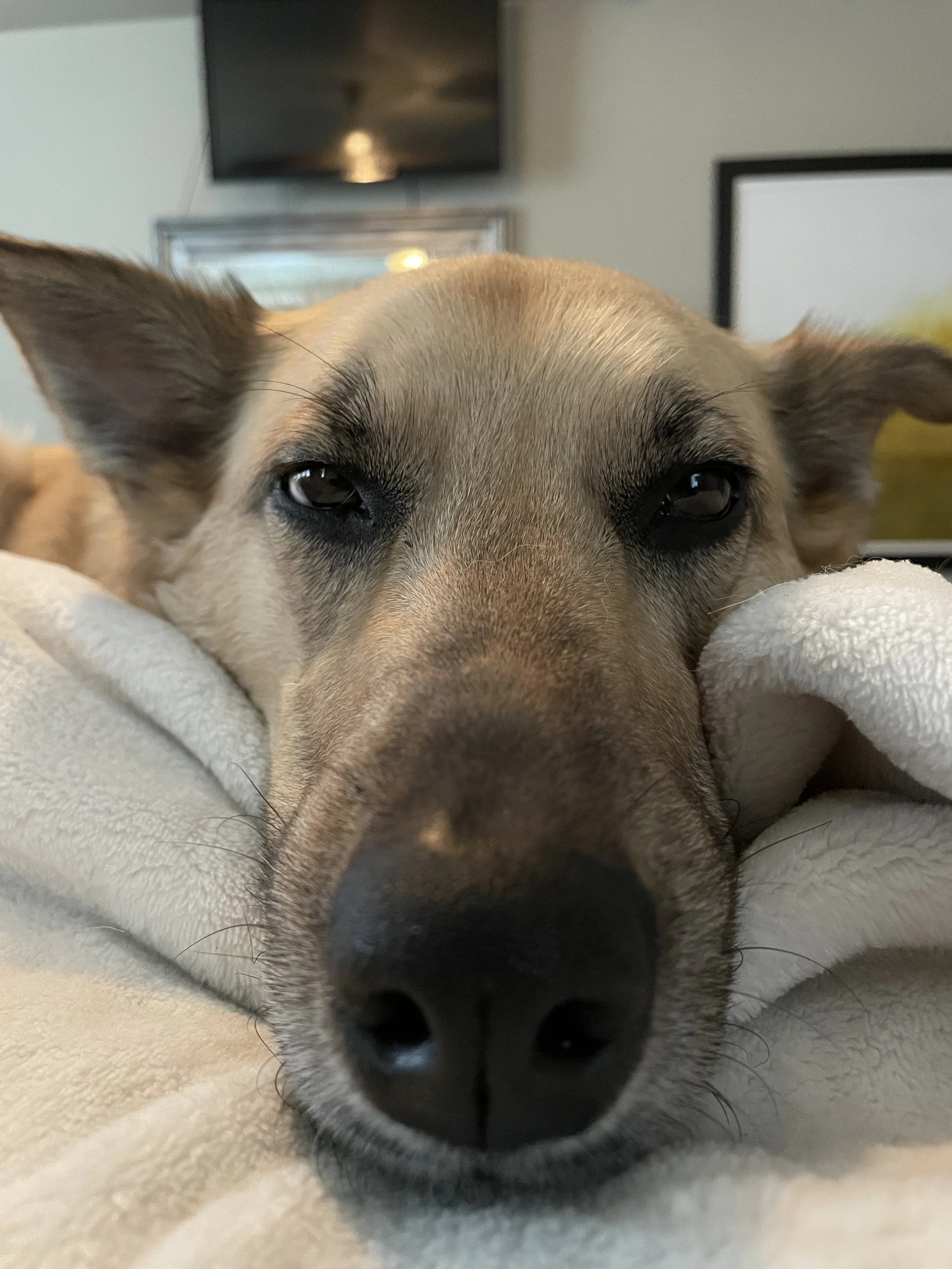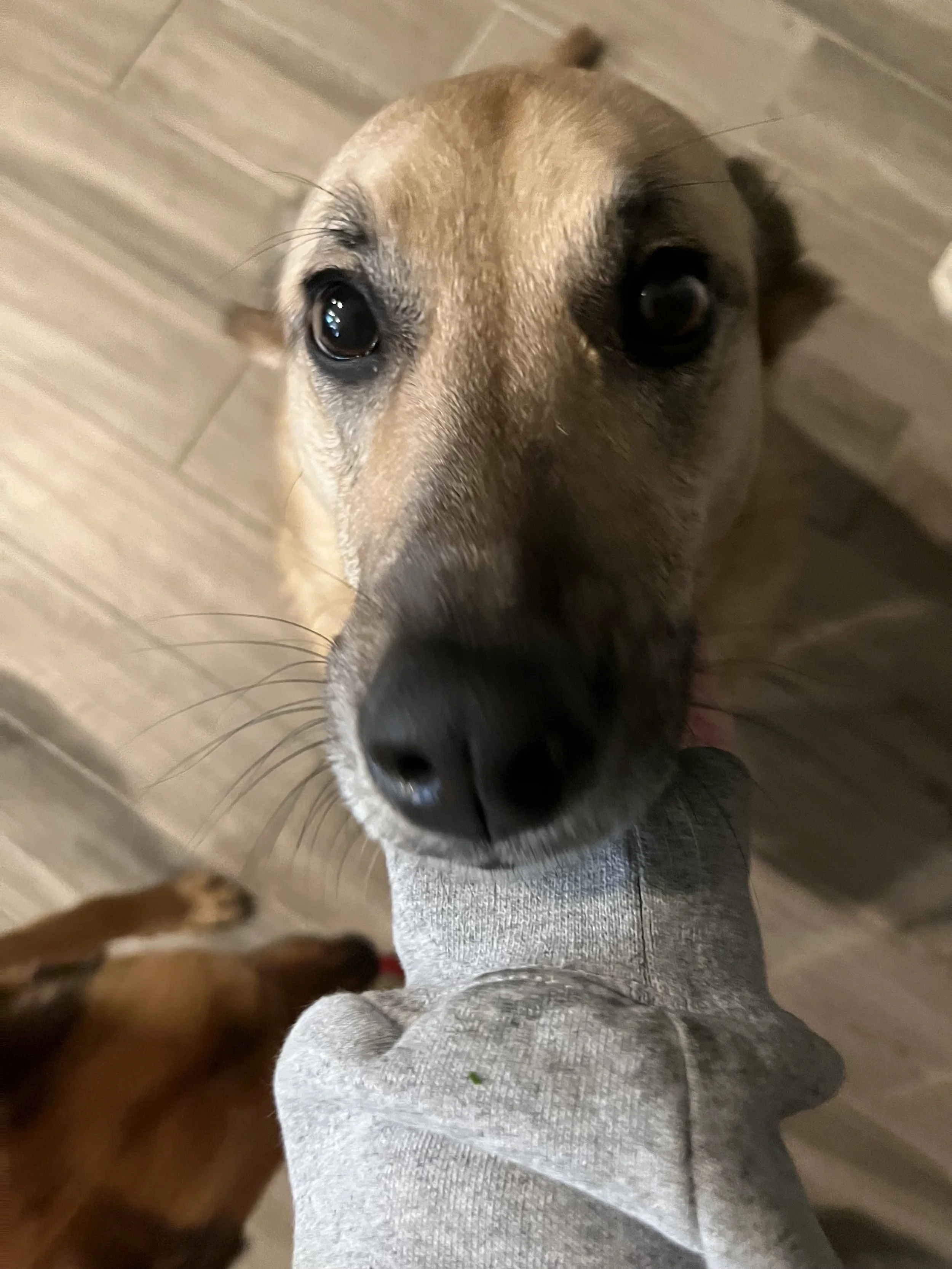 Fikiri is 3 years old. When she was 1 year old she got lost in the flatirons in boulder colorado. She was lost for 3 days with a leash on. She was found by the local middle schoolers. When we found her she had thorns and burns all over her body. She had big scrapes on the back of her legs and was very tired and thirsty. Ever since then she is a little bit different. She is more skittish and more scared than she was when we first got her. She is the sweetest girl ever and is doing amazing at home but in the community she is nervous