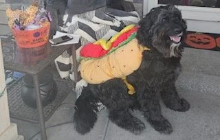 Monty is a 6 year old male labradoodle that is very playful. He loves to play ball, go on walks, ride in the car and he loves to play in the snow. He loves to get belly rubs, lay on the couch and get puppy massages. Monty can also sit, lay down, shake, fetch, jump up for big hugs and cuddle.