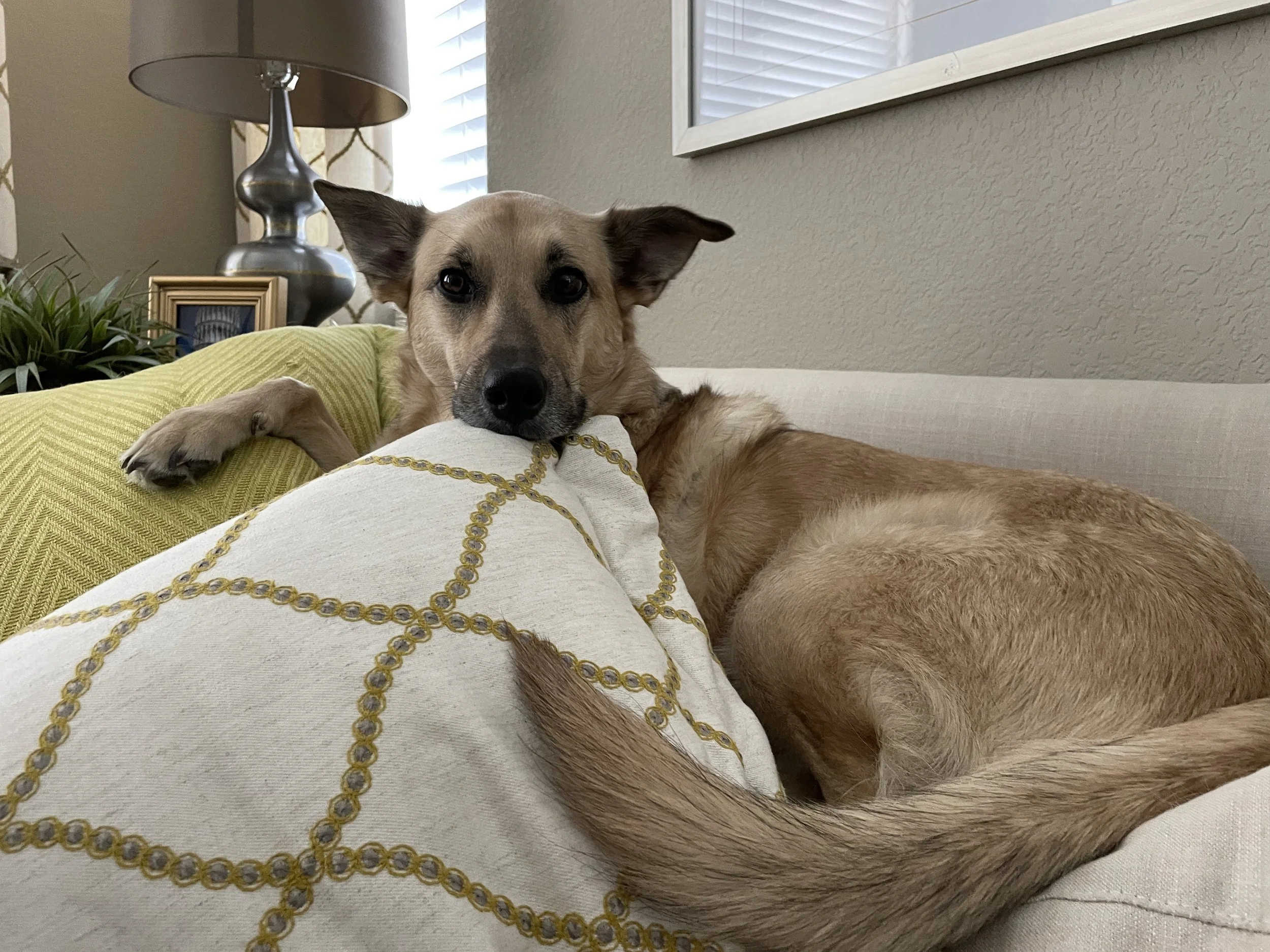 Fikiri is 3 years old. When she was 1 year old she got lost in the Boulder Colorado Flatirons, known for hikers spotting predatory cats and wolves! She was lost for 3 days with a leash on. She was found by the local middle schoolers. When we found her she had thorns and burns all over her body. She had big scrapes on the back of her legs and was very tired and thirsty.